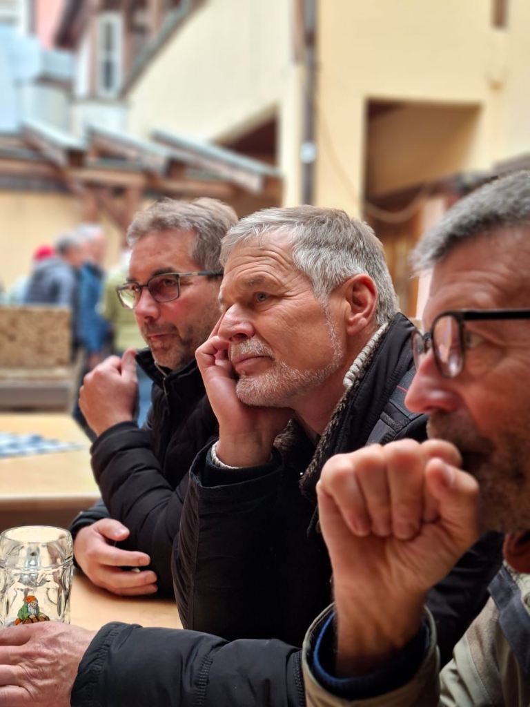 Halb verdurstet, aber glücklich, erreichte die Reisegesellschaft schließlich ihr Ziel und konnte sich rechtzeitig stärken, bevor es weiter Richtung Hotel ging. Abends um 17:30 Uhr stand ein zünftiges Abendessen auf dem Programm – das Schäufela mit Knödel und Sauerkraut war der unangefochtene Bestseller. Einfach top! Danach zogen kleinere und größere Gruppen los, um die zahlreichen Brauhäuser der Stadt zu erkunden – natürlich inklusive der ein oder anderen Kostprobe lokaler Spezialitäten. Und dank der offenen und herzlichen Art von Brenderla und Fritschla konnte schnell Kontakt zu anderen Reisegruppen geknüpft werden, was für beste Stimmung sorgte.