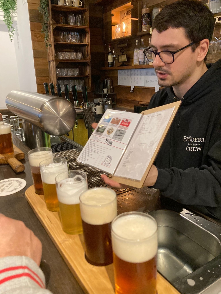 Was macht man um 9:30 Uhr morgens in Bamberch? Richtig – Kulturprogramm, schließlich handelt es sich um einen Kulturausflug! Fazit: Eine wunderschöne Stadt, in der an jeder Ecke Geschichte lebendig wird. Besonders der imposante Dom mit seinen Nebengebäuden sowie die Brücke über die Regnitz bleiben in Erinnerung. Im Brüderla ließen sich die neu gewonnenen Eindrücke anschließend bei einem hausgemachten Kaltgetränk gemütlich Revue passieren.